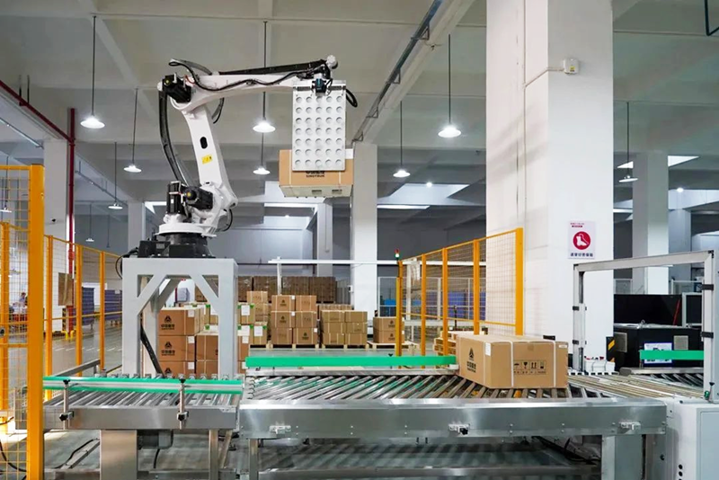 巨大的機械臂將成品整齊堆放入庫。記者馮明旻攝