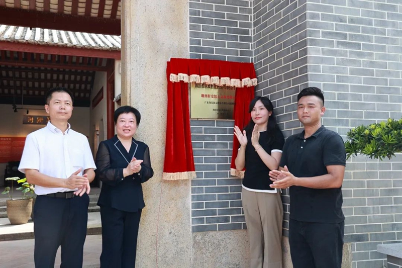 火炬高新區(qū)黨工委委員、管委會副主任吳楚萍(左二)參加珊洲村史館揭牌儀式。
