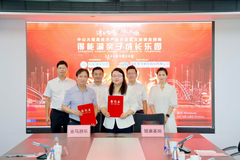“城市會(huì)客廳+科技游樂”的創(chuàng)新型親子文旅項(xiàng)目等即將落地得能湖公園!9月20日,中山市健康基地集團(tuán)有限公司與廣東金馬游樂股份有限公司(下稱:金馬游樂)簽訂“得能湖親子成長樂園”文旅項(xiàng)目投資協(xié)議。中山港街道黨工委副書記胡楠,區(qū)宣傳辦(教體文旅局)主任(局長)李建英、副主任(副局長)譚海波,健康基地集團(tuán)總經(jīng)理萬鶴群、總經(jīng)理助理涂莉,金馬游樂集團(tuán)董事長鄧志毅、副總經(jīng)理李勇、副總經(jīng)理曾慶遠(yuǎn),中山市金馬文旅發(fā)展有限公司文旅開發(fā)總監(jiān)陳弢出席了活動(dòng)。