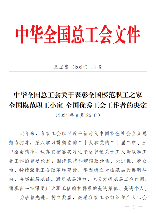 近日,中華全國總工會印發(fā)《中華全國總工會關(guān)于表彰全國模范職工之家 全國模范職工小家 全國優(yōu)秀工會工作者的決定》,表彰了一批先進(jìn)集體和先進(jìn)個人。來自健康基地園區(qū)的武藏精密汽車零部件(中山)有限公司工會委員會被授予全國模范職工之家稱號。
