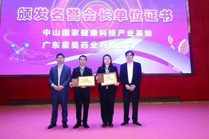 大會(huì)共產(chǎn)生了33個(gè)理事單位、3個(gè)監(jiān)事單位,選舉了會(huì)長(zhǎng)單位、監(jiān)事長(zhǎng)單位各1個(gè),副會(huì)長(zhǎng)單位1個(gè)、秘書(shū)長(zhǎng)1名,并聘請(qǐng)了9名發(fā)展顧問(wèn),授予了中山國(guó)家健康科技產(chǎn)業(yè)基地和廣東星昊藥業(yè)有限公司為名譽(yù)會(huì)長(zhǎng)單位。