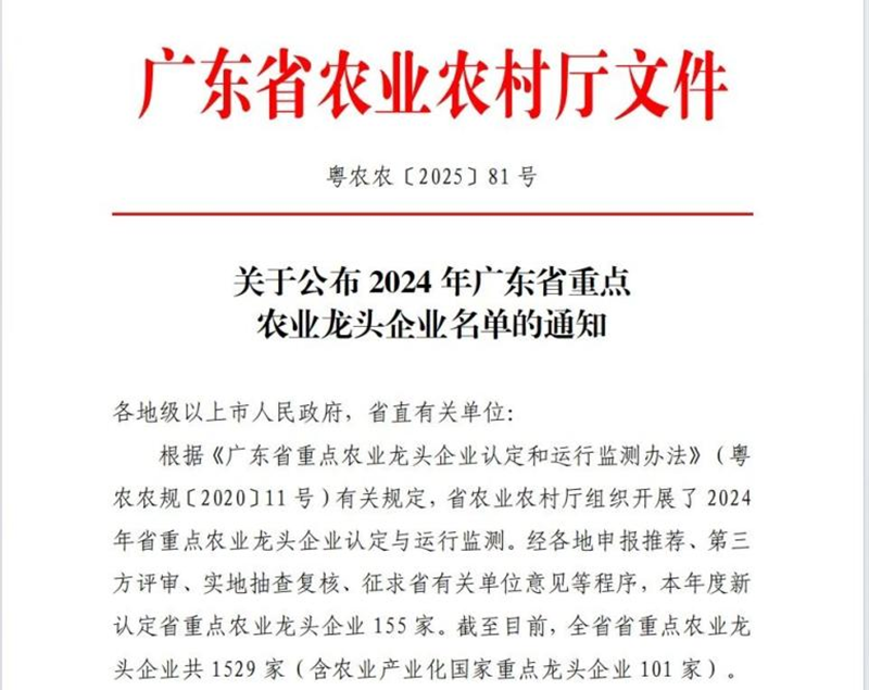近日,廣東省農(nóng)業(yè)農(nóng)村廳正式公布2024年廣東省重點農(nóng)業(yè)龍頭企業(yè)名單,健康基地園區(qū)企業(yè)廣東民昇食品有限公司(下稱:民昇食品)成功入選。