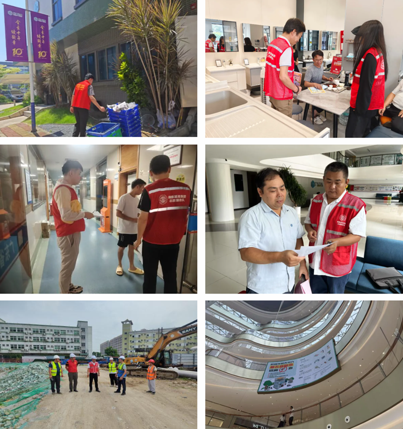 全體“健康基地人”深入標志廣場、智匯園、電子城廠區(qū)、B區(qū)宿舍等核心區(qū)域,組建三支精銳小隊協(xié)同攻堅。第一支環(huán)境衛(wèi)士隊聚焦廠房外圍、綠化帶及沙井等關(guān)鍵區(qū)域,開展“清淤+養(yǎng)護+防患”三位一體治理,修剪植被、清除雜草枯葉,壓縮蚊蟲棲息和繁殖空間。第二支保潔攻堅隊來到廠房和宿舍載體、活動場所、沿街商鋪,深度清潔空調(diào)死角、水管夾縫、物品堆放處、樓頂堆物區(qū)等衛(wèi)生盲區(qū)并對空置廠房、背街巷子等實施徹底的環(huán)境整頓。第三支整理收納隊系統(tǒng)規(guī)劃堆放物品、廢棄物品區(qū)等,整理收納隊以園區(qū)為單位,系統(tǒng)規(guī)劃園區(qū)堆放物品與廢棄物料區(qū), 并對園區(qū)企業(yè)堆放物品進行整理,規(guī)范企業(yè)倉儲管理,推動園區(qū)“顏值”與安全雙提升。