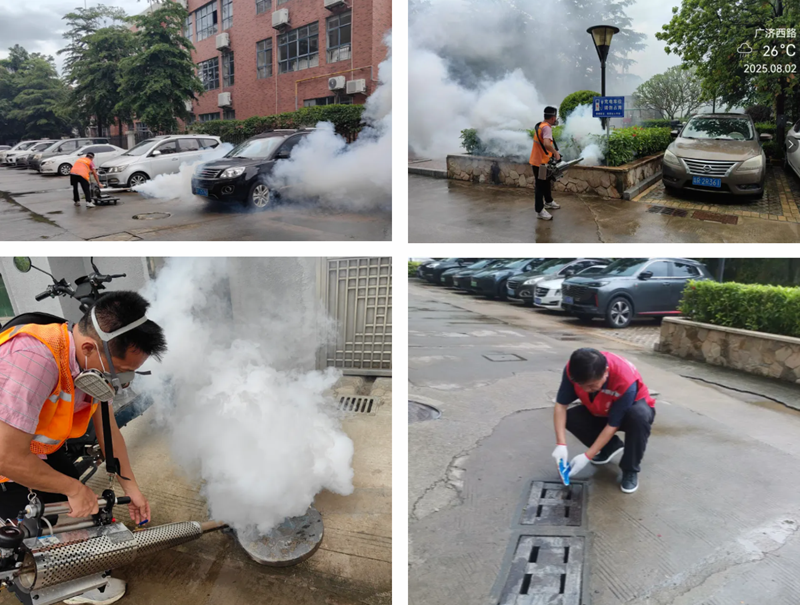 利用周末人少時段,健康基地專業(yè)消殺小隊再次來到智匯園、生物谷、灣區(qū)藥谷2號、電子城廠區(qū)、A區(qū)/B區(qū)廠房、聯(lián)東廠區(qū)、張一村/張三村代管物業(yè),聚焦車庫、排水溝、綠化帶、垃圾堆放處等重點蚊蟲孳生地,系統(tǒng)開展管網(wǎng)疏通、積水清除作業(yè)、科學投放預(yù)防性藥劑,從源頭降低蚊蟲密度。在園區(qū)人群活動區(qū)域,重點消殺標志廣場、籃球場、幼兒園、A區(qū)/B區(qū)宿舍、中心區(qū)宿舍的樓梯、器材、空調(diào)管道等死角,并在垃圾站周邊噴灑緩釋型殺蟲顆粒劑,為園區(qū)企業(yè)員工和社區(qū)居民構(gòu)筑起一道堅實的公共衛(wèi)生屏障。