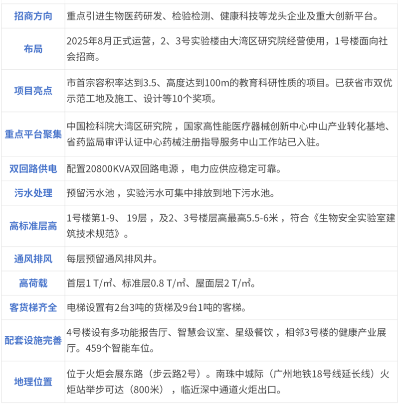在公有載體物業(yè)推介環(huán)節(jié),萬鶴群總經(jīng)理重點推介了中國檢科院粵港澳大灣區(qū)研究院大樓、灣區(qū)藥谷2號及3號樓三大優(yōu)質(zhì)載體。這些載體不僅地處深中通道火炬出口“第一站”,區(qū)位優(yōu)勢顯著,還配備具有競爭力且靈活多元的政策支持體系。