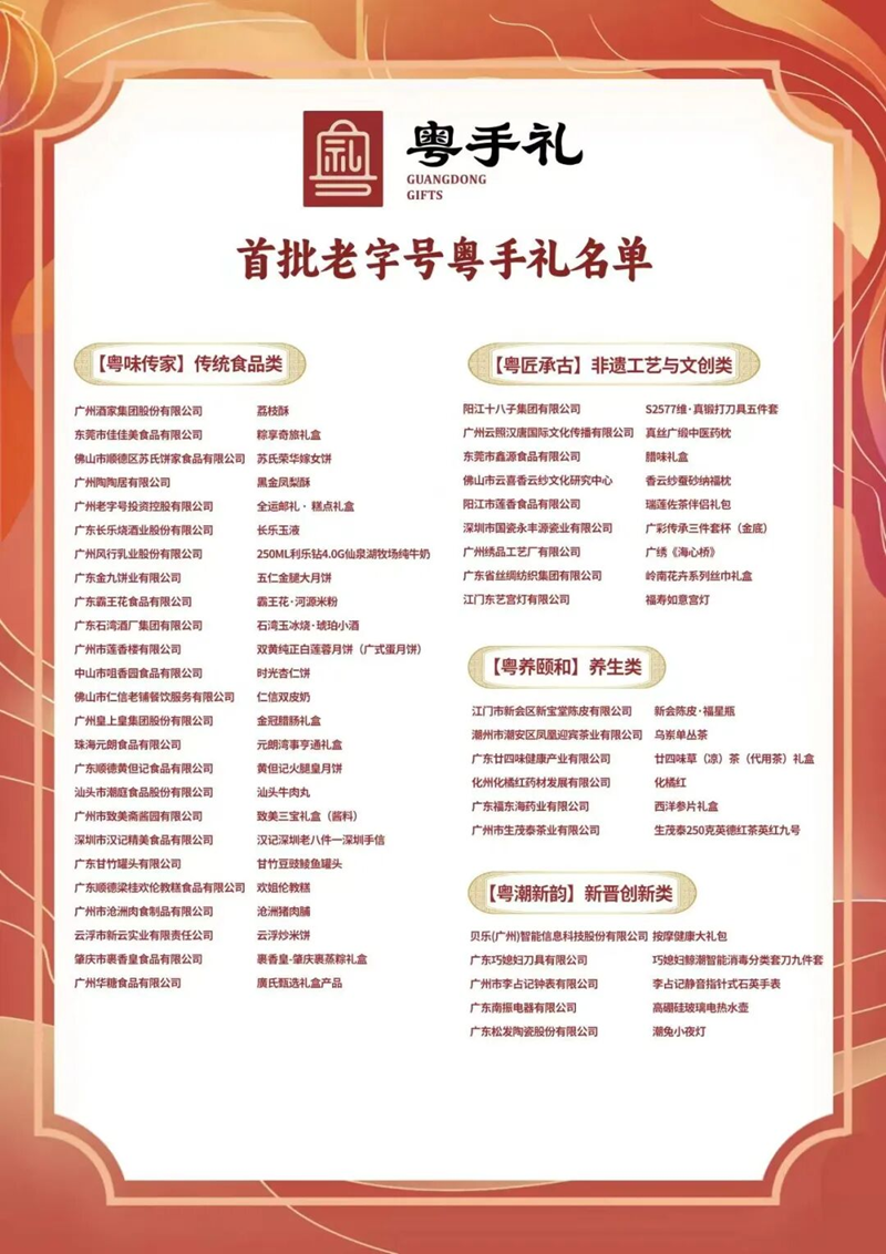 今年8月,為落實《廣東省促進(jìn)老字號創(chuàng)新發(fā)展行動方案(2022-2025)》要求,促進(jìn)廣東老字號企業(yè)推出更多具有地域特色、文化內(nèi)涵、時代特點的“必購必帶”產(chǎn)品,賦能老字號消費(fèi),推動老字號品牌升級,助力“粵品出粵”,提升“粵手禮”產(chǎn)品的市場競爭力和品牌影響力,在廣東省商務(wù)廳、廣東省文化和旅游廳的指導(dǎo)下,廣東省老字號協(xié)會對“粵手禮”進(jìn)行產(chǎn)品征集、資格初審、專家評審、綜合考評等多個環(huán)節(jié)的層層篩選。涵蓋“粵味傳家”傳統(tǒng)食品類、“粵匠承古”非遺工藝與文創(chuàng)類、“粵養(yǎng)頤和”養(yǎng)生產(chǎn)品類、“粵潮新韻”新晉創(chuàng)新品類等,共計四大品類45件產(chǎn)品入圍。