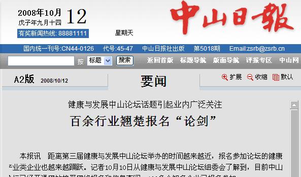 本報(bào)訊 距離第三屆健康與發(fā)展中山論壇舉辦的時(shí)間越來越近,報(bào)名參加論壇的健康產(chǎn)業(yè)類企業(yè)也越來越踴躍。記者10月10日從健康與發(fā)展中山論壇組委會(huì)了解到,目前中山論壇已經(jīng)開通網(wǎng)站接受網(wǎng)絡(luò)報(bào)名和信息查閱,100多個(gè)知名企業(yè)已報(bào)名參加。